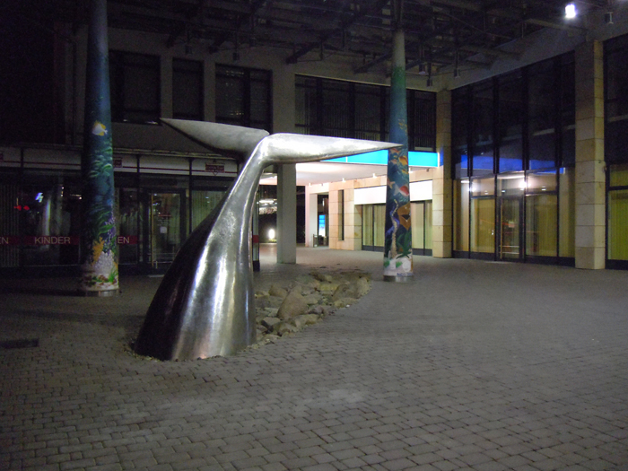 Ausgangspunkt: Ulf Puders Wal-Skulptur vor dem Arbeitsamt in Leipzig.