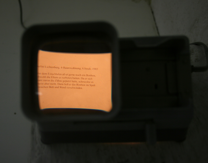 2010 · Tapete, zwei Nägel, Dia, Diabetrachter · Maße variabel